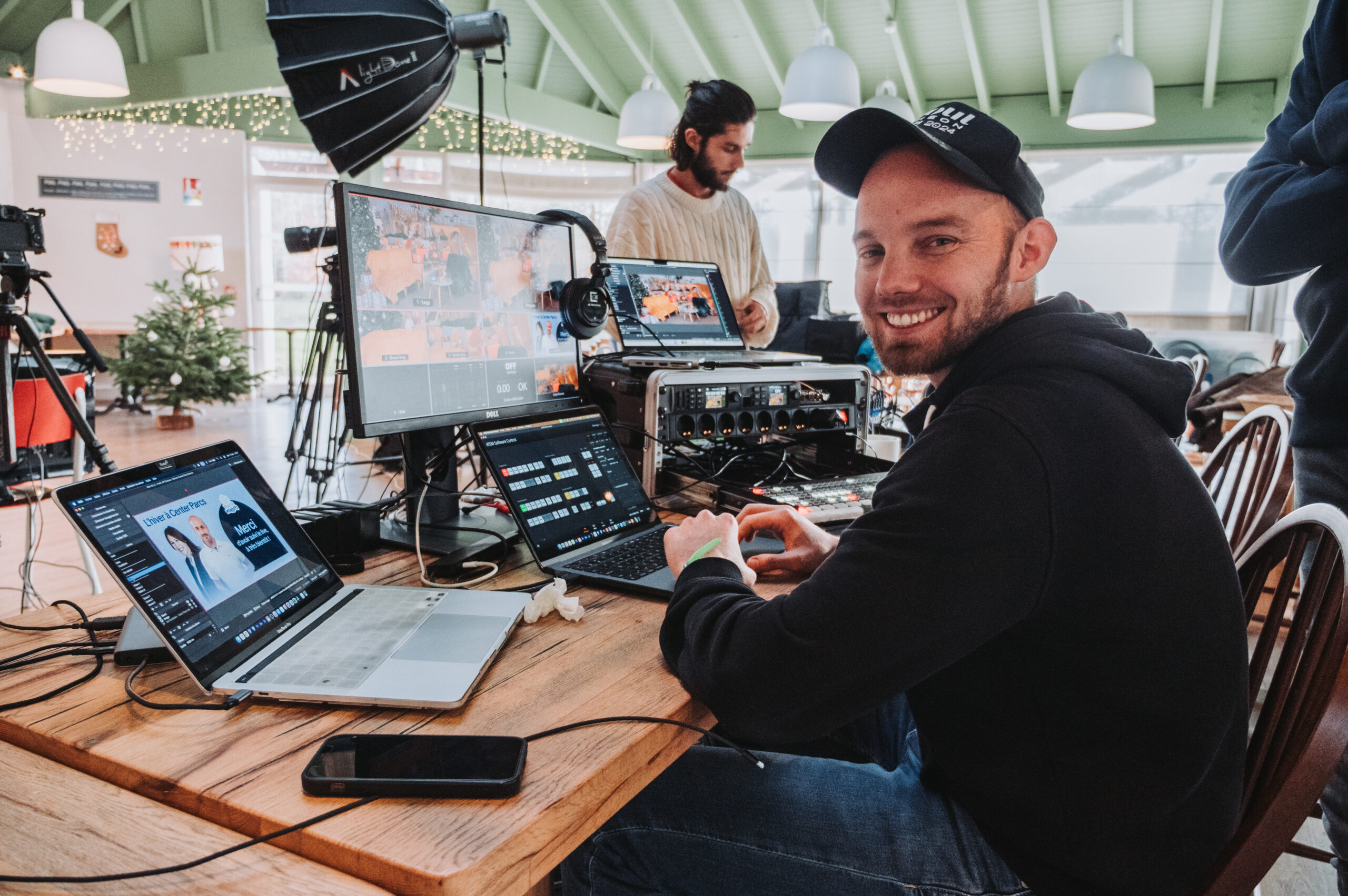 Anticipation maximale : nous arrivons bien avant les invités pour positionner nos caméras, câbler les micros et valider la lumière.